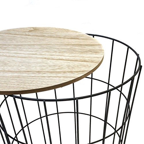 Specification: Bijzettafel rond 40xH43cm, zwarte metalen mand met afneembare houten plaat – bewaarmand, salontafel, bloementafel…
