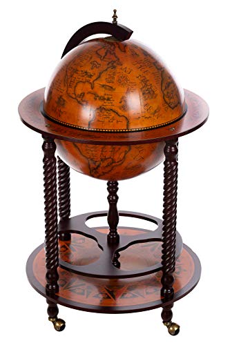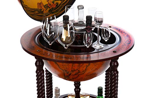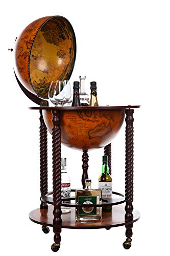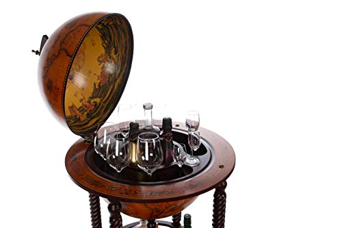 Deze grote wereldbol-barwagen is geopend ca. 119 cm hoog x 60 cm breed gesloten 101 cm hoog