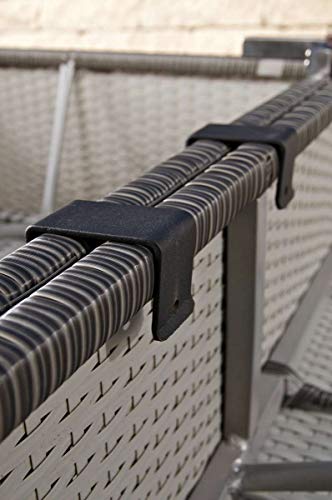 Met deze verbindingsklemmen zet u de afzonderlijke elementen van tuinmeubelen en meubelsets aan elkaar vast om te voorkomen dat het rotanmeubilair wegglijdt en verschuift. Wij adviseren twee klemmen per aansluiting.