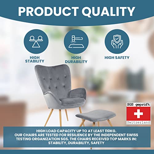Specification: De Albatros-oorfauteuil met YORK-kruk, grijs, fluwelen hoes, comfortabel gestoffeerd, tv-fauteuil, gestoffeerde fauteuil