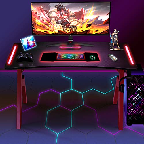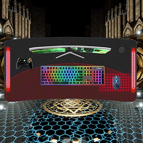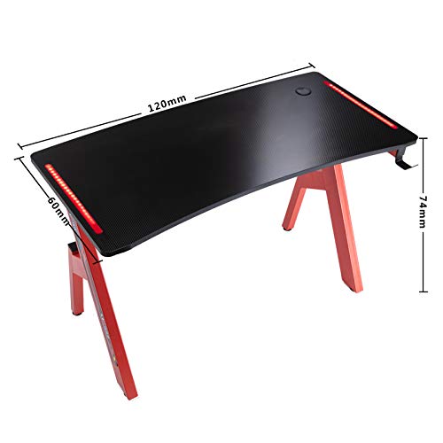 Specification: DLONGONE Ergonomische gamingtafel, 120 x 60 cm, Y-vorm, met led-pc, gaming bureau, gaming decoratie, gaming-accessoires…