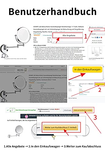 Specification: DOWRY Make-upspiegel met verlichting, wandmontage, 7 x / 1 x uitbreidbare make-upspiegel met licht, 360 graden draaibaar…