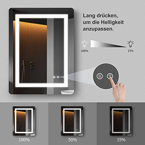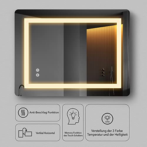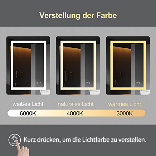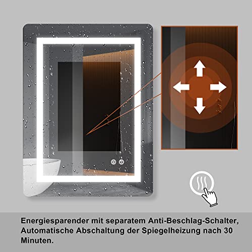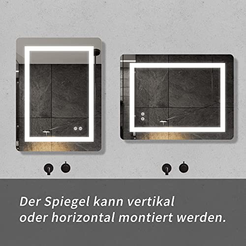 Specification: FRALIMK LED spiegel 60x80cm LED badkamerspiegel met anti-condens, dimbare LED verlichte spiegel, frameloze slimme…