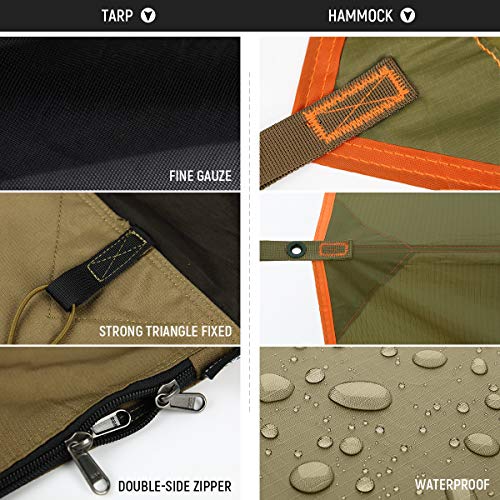 Specification: FREE SOLDIER Tactische hangmat voor 2 personen, lichte waterdichte draagbare schommel met klamboe, regenvliegtent, zeil…