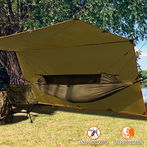 FREE SOLDIER Tactische hangmat voor 2 personen, lichte waterdichte draagbare schommel met klamboe, regenvliegtent, zeil…