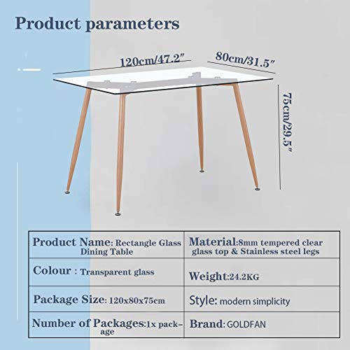 Specification: GOLDFAN Glazen Eettafel en Stoelen Set 4 Moderne Keukentafel en Retro PU Kussen Stoelen met Beukenhouten Benen Eettafel…