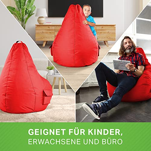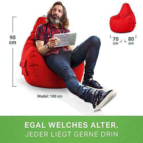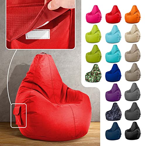 GAMING ZITZAK: Coole zitzak met rugleuning 80×70 cm en duurzame hoes (50% polyester, 50% PVC) voor binnen- en buitengebruik. Afzonderlijke, hervulbare inlaat met 230 liter EPS-kralen zitzakvulling, gemaakt in Duitsland. Verkrijgbaar in diverse kleuren en patronen.