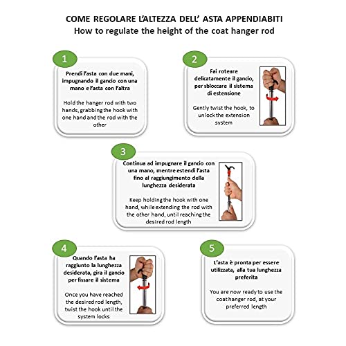 Specification: La Briantina chromen kapstok, telescopische kasthaak, uitschuifbaar tot 150 cm