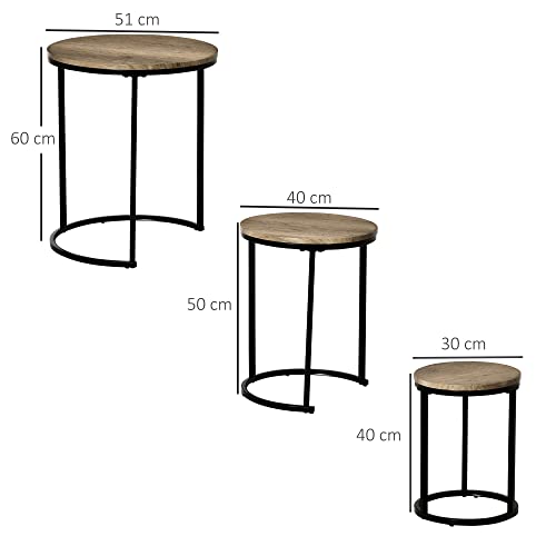 Modern design: met zijn tafelblad van hout en het zwarte frame is dit stijlvolle nest van 3 tafels een perfecte aanvulling voor uw huis. Dankzij zijn moderne uitstraling past deze bijzettafelset bij elk interieur.