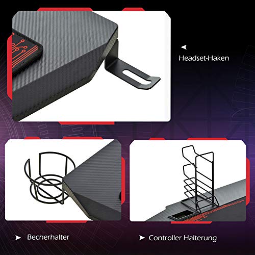 Zoals bij traditionele sporten moeten ook e-sporten met een speciale uitrusting worden uitgerust. Ons Homcom gaming-bureau is een computerbureau dat is ontwikkeld voor spelliefhebbers of professionele gamers. Het heeft een stabiele, modieuze en technologische uitstraling. Hij is uitgerust met een hoofdtelefoonhouder, een bekerhouder, een 5-laagse controllerhouder en andere accessoires. Geniet met volle teugen van de wereld van de spelletjes.