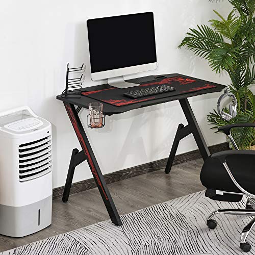 Specification: HOMCOM gaming tafel bureau computertafel werktafel meubels voor kantoor woonkamer werkkamer, modern design, MDF, metaal…