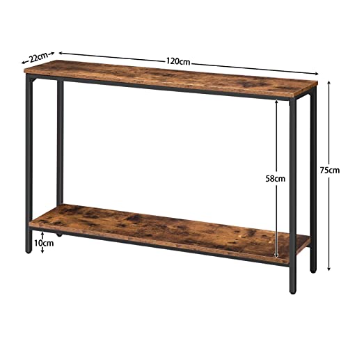HOOBRO Consoletafel, gangtafel, 120 x 22 x 75 cm, smalle bijzettafel in industriële stijl met plank, eenvoudige montage…