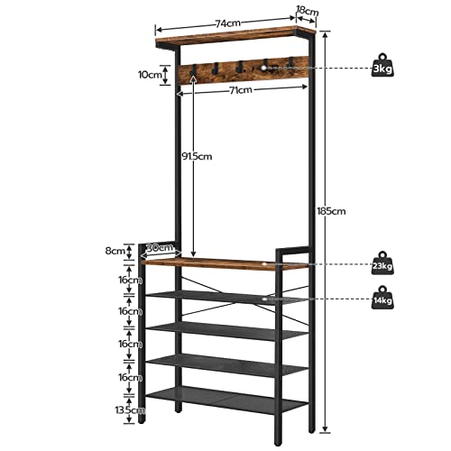 Specification: HOOBRO Kapstok, kapstok met schoenopslag, industriële hal boom, grote hal standaard, 5 verwijderbare haken, houten…