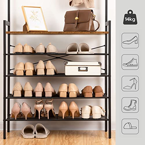 HOOBRO Kapstok, kapstok met schoenopslag, industriële hal boom, grote hal standaard, 5 verwijderbare haken, houten…