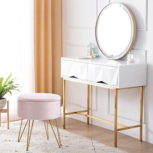 Multifunctioneel: elegant design is perfect voor make-up en woondecoratie. De kleine ronde poef kruk kan dienen als een voetkruk, dienblad bovenop als een eindtafel, een bijzettafel, een make-upmake-up-make-upkruk, een comfortabele stoel voor de ijdelheid of een extra zitplaats voor gasten. Je kunt dienbladen, boeken, snacks, enz. plaatsen. Ideaal voor ijdelheid dressoir, woonkamer, entree, kantoor of slaapzaal.