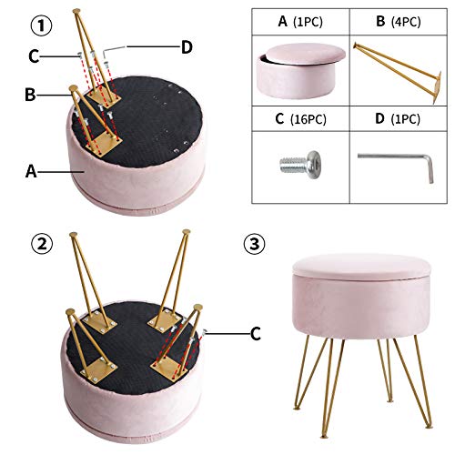 Specification: IBUYKE Voetbank Fluwelen Ronde Ottomaanse Poef Kruk Kaptafel Kruk Metalen Poten Verwijderbare Cover, voor Thuis…