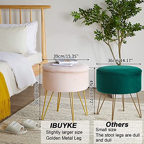 IBUYKE Voetbank Fluwelen Ronde Ottomaanse Poef Kruk Kaptafel Kruk Metalen Poten Verwijderbare Cover, voor Thuis…
