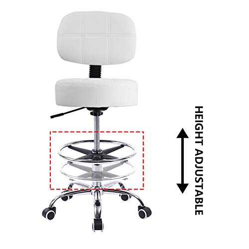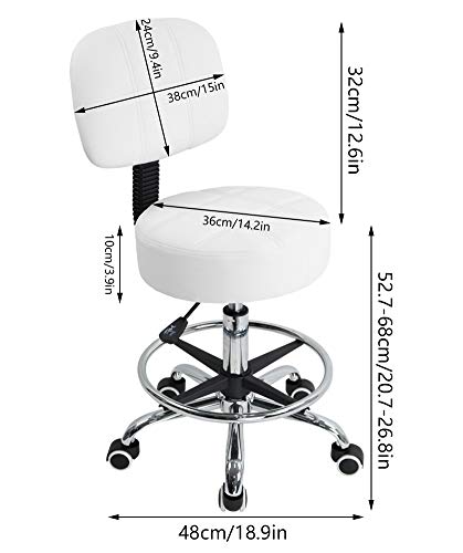Specification: KKTONER Draaibare ronde rollende kruk met verstelbare voetsteun in hoogte verstelbare met rug PU-leer Wit
