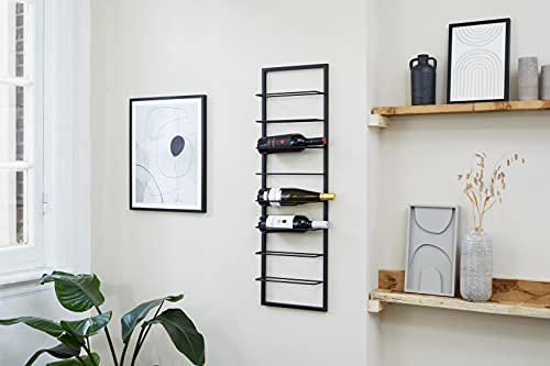 Minimalistisch wijnrek: Het wandrek heeft een zwart metalen frame en een strak design. Het wijnrek heeft ruimte voor 8 wijnflessen en kan 12 kg dragen. Het wijnrek zal werkelijk prachtig staan in elke woonruimte.