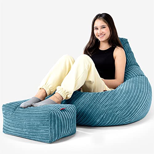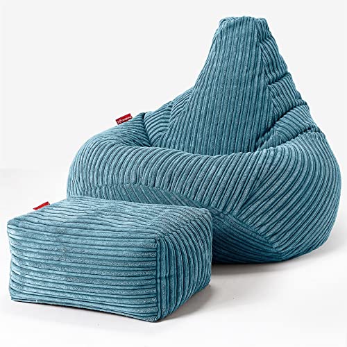 LOUNGE PUG, Zitzak Gaming Stoel, Fauteuil Poef, Corduroy Petrol