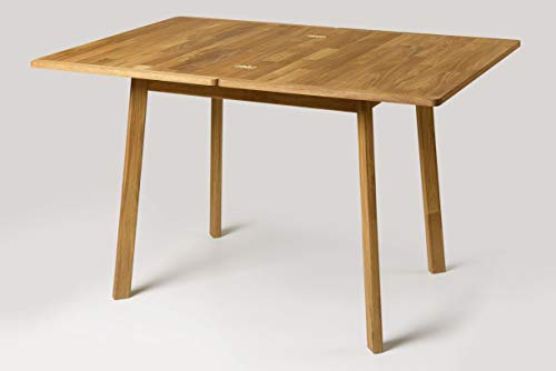 Afmetingen: tafel gesloten: lengte 90 cm x breedte 65 cm x hoogte 77 cm. Tafel open: lengte 130 cm x breedte 65 cm x hoogte 75 cm. Gewicht: ca. 29 kg. Kleur: eiken naturel