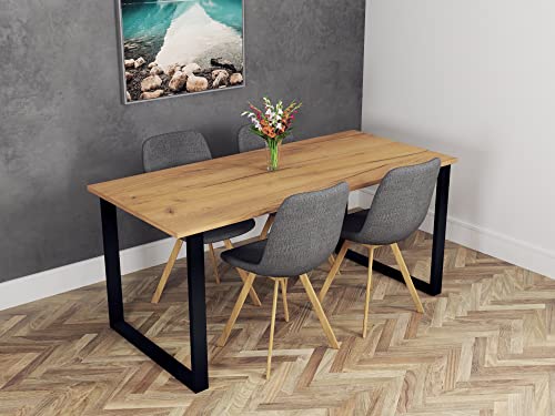 Hoogwaardig tafelblad – 2,5 cm dik blad gemaakt van gelamineerde meubelplaat FSC-gecertificeerd die in zijn kleur, nerf en structuur natuurlijk hout imiteert. Het gewicht van het blad is vergelijkbaar met dat van een blad van massief eikenhout, waardoor ons product een perfecte imitatie geeft van een houten blad.