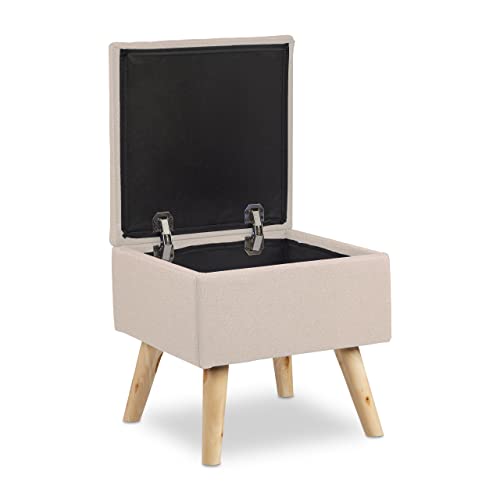 Specification: Relaxdays Kruk met opbergruimte, kunstlinnen bekleding, gestoffeerd, houten poten, voetenbank met deksel, HBT 40x40x40…