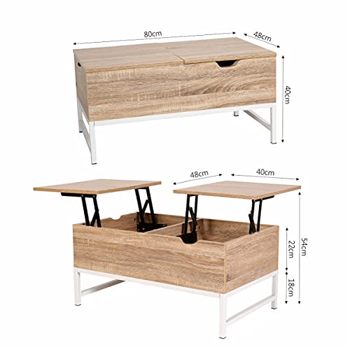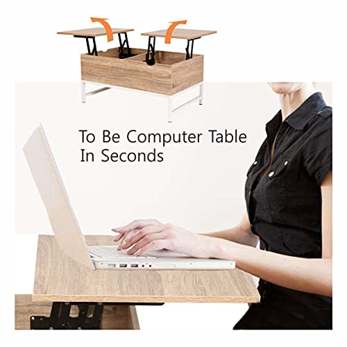 ease Lift Up Salontafel met 2 compartimenten, Lift-Top bijzettafel met opbergruimte en plank Functioneel ontwerp…