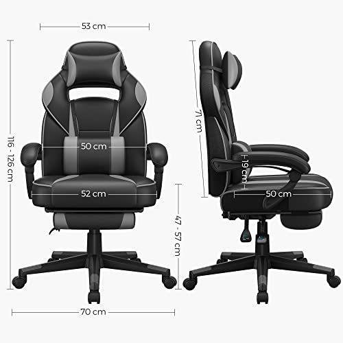 Specification: SONGMICS Gaming chair, bureaustoel met voetsteun, bureaustoel met hoofdsteun en lendenkussen, in hoogte verstelbaar…
