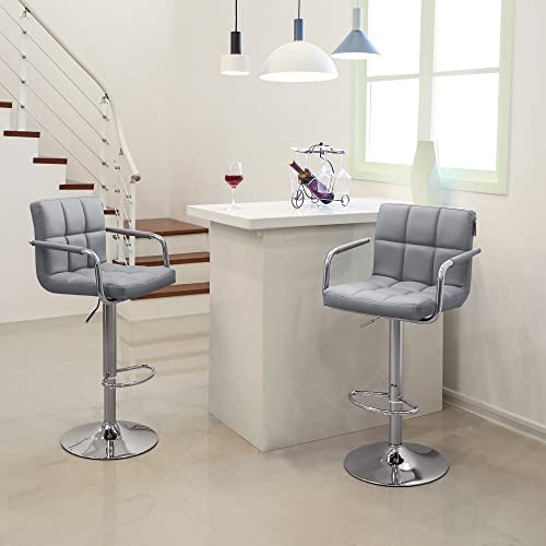 Songmics LJB93G 2 x barkruk met armleuningen, leuning, belastbaar tot 200 kg, imitatieleer, grijs, 55 x 52,2 x 49 cm
