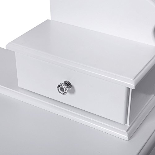 Perfect opbergwonder – 5 laden met kristallen handgrepen en de grote legplank van 80 x 40 cm zorgen voor voldoende opbergruimte voor je make-up- en kapspullen. En voorzien van een onderverdeler, je sieraden, haaraccessoires, nagellak, make-upgereedschap en verzorgingsproducten kunnen daardoor gesorteerd en netjes worden opgeborgen. Alle dingen die je zoekt, zijn snel te vinden en binnen handbereik
