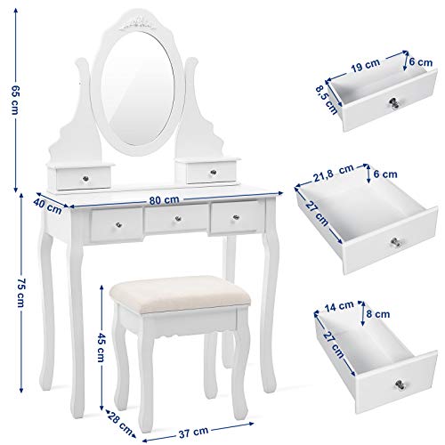 Specification: SONGMICS Make-uptafel met 5 laden (incl. 2 onderdelen), kaptafel met spiegel en kruk, make-uptafel met kantelbeveiliging…