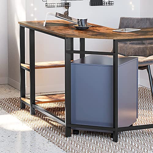 VASAGLE bureau, L hoekbureau met 2 planken, ruimtebesparend bureau in industrieel ontwerp, 138 x 138 x 75 cm, vintage…