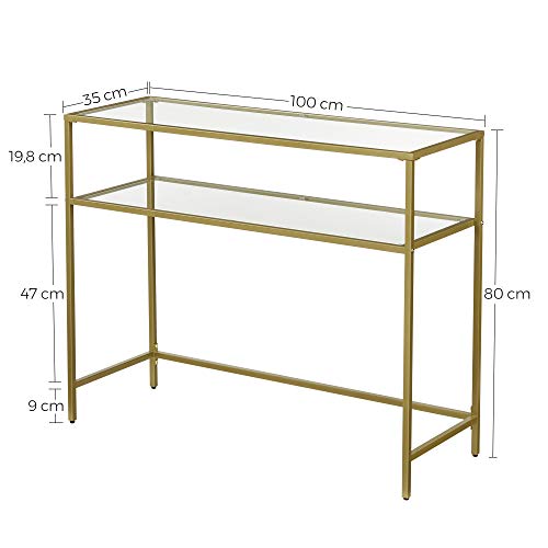 Specification: VASAGLE Consoletafel, bijzettafel met 2 planken, 100 x 35 x 80 cm, gehard glas, opbergrek, metalen frame, verstelbare…