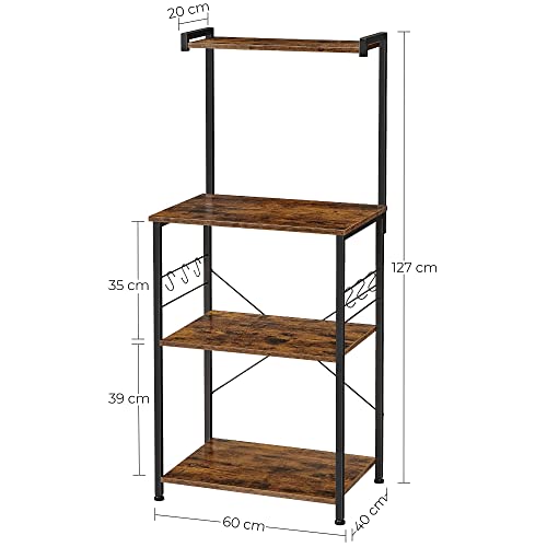 VASAGLE keukenplank, staand rek met 3 schappen, met 6 S-vormige haken, industrieel ontwerp, voor magnetron, kookgerei…