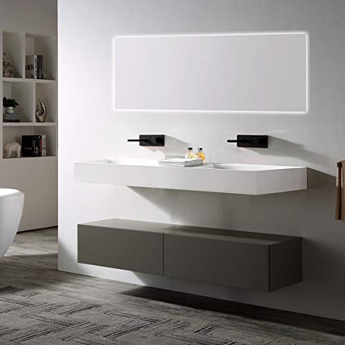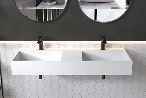 Dubbele hangbak TWG231 in massieve steen – mat wit – met opbergruimte