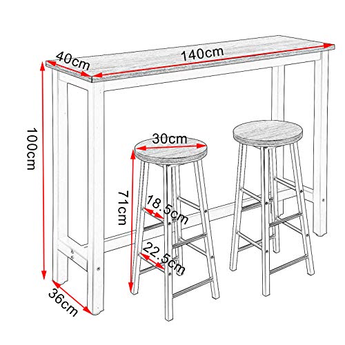 Afmetingen: ❤ Bartafel–Tafelblad: ongeveer 140×40 cm; Hoogte: ongeveer 100 cm; max. Barkruk–Zitting: ongeveer 30x30cm;Hoogte: ongeveer 71cm;Laadvermogen: 100 kg. Het oppervlak is gemakkelijk te onderhouden en schoon te vegen.