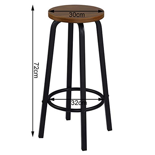 WOLTU 1 Bartafel + 2 Krukken Industriële,Bistrotafel met Bistrokruk in spaanplaat en staal,Donkerebeuken BT17dc+BH237dc…