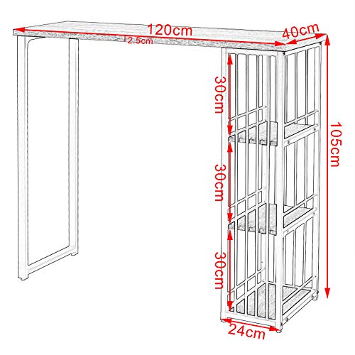 Afmetingen: ❤ Tafelblad: ongeveer 120x40cm; Hoogte: ongeveer 105 cm; Max. Draagvermogen: 100 kg. Het oppervlak is glad, dus gemakkelijk te onderhouden en schoon te vegen.