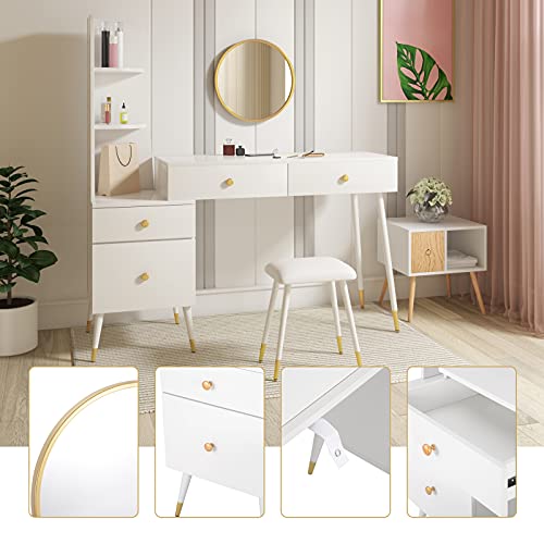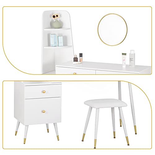 Specification: Woltu Make-up-tafel met kruk en spiegel, kaptafel, nachtkastje met 4 laden, groot tafelblad 100 x 38 cm, moderne make-up…
