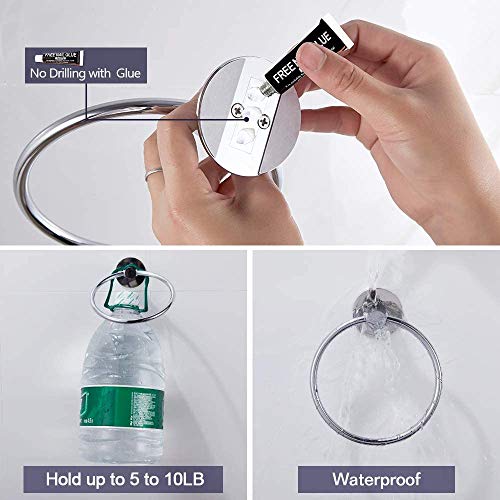 Wopeite Zelfklevende handdoekring Zonder boren Handdoekhouder rond met klevend RVS voor badkamer Gepolijst zilver