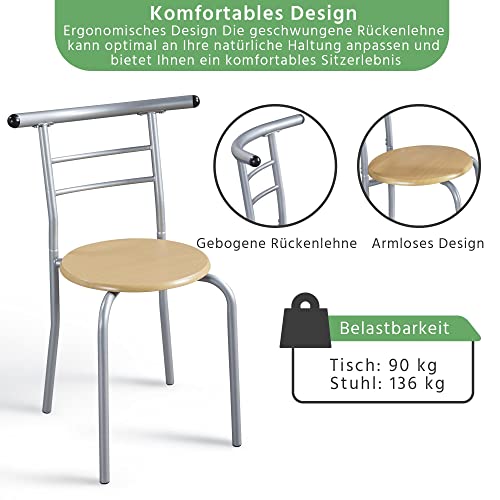 Robuust en duurzaam: Gemaakt van duurzame MDF-houten platen, robuust genoeg voor jarenlang dagelijks gebruik. Het tafelblad met waterafstotende coating biedt je de ideale plek om van je koffie/ontbijt/diner en dergelijke te genieten. De stevige metalen poten met anti-kraslaag geven de 2 stoelen en de eettafel extra stabiliteit en duurzaamheid.
