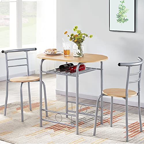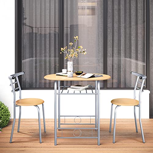 Yaheetech Eetkamergroep, 3-delig, eettafel met 2 stoelen, zitgroep, keukentafel met legplank, houten tafel, balkontafel…